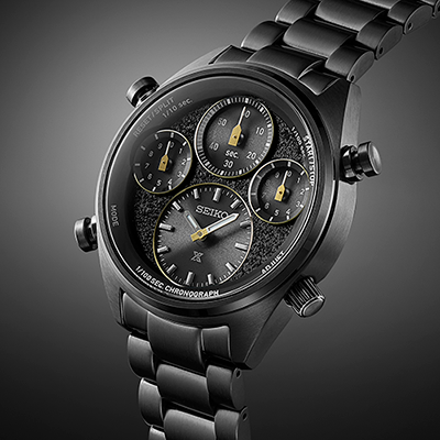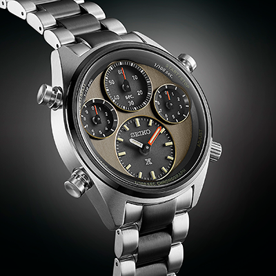 The limited-edition creation with the grey-toned dial celebrates the 40th anniversary of the world’s first analog quartz chronograph, introduced in 1983. The dial and reddish-orange hands pay respect to the world’s first analog chronograph that displayed elapsed time in increments of 1/100th of a second, which was introduced by Seiko nine years later, in 1992. This was a particularly epoch-making development in the history of Seiko’s analog quartz chronograph.