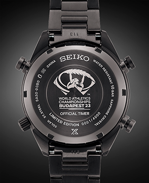 Since 1985, Seiko has been the timekeeper of choice for World Athletics. In 2023, for the 18th consecutive time, Seiko will be the official timekeeper of the World Athletics Championships, which will be competed in Budapest, Hungary. This new limited edition solar chronograph celebrates the sporting heritage of both Seiko and the World Athletics Championships. The dial features a texture that evokes the surface of the running track, and the hands, as well as the outer ring of each sub-dial, are in gold coloring to call to mind the first-place medal.