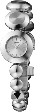 Power Design Project Limited Edition. The “Power Design Project” began in 2001 as an initiative for Seiko Watch Corporation’s designers to explore the essence of watches and pursue design possibilities in a style different from their regular work. Inspired by modern jewelry, this elegant and unique Limited Edition is styled to be perfect for both every day and special occasions. The loose-fitting construction embodies today’s fashion accessories that aim for freedom from tightness with an effortless comfort, while the asymmetrical bracelet, designed with different-sized links on the 12 o’clock and 6 o’clock sides, expresses the duality of one’s diverse self in both the real and virtual worlds. Featuring a clean contemporary silver dial for a monochromatic aesthetic, this sophisticated timepiece is crafted of stainless steel and includes a deployment clasp with push-button release. 3 bar, 30M Water Resistant