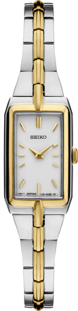 From the Essentials Collection. Inspired by jewelry design, this elegant watch is styled to be perfect for both every day and special occasions. Featuring a white dial with gold accents, this sophisticated timepiece is crafted of stainless steel with two-tone finish. 3 bar, 30M Water Resistant
